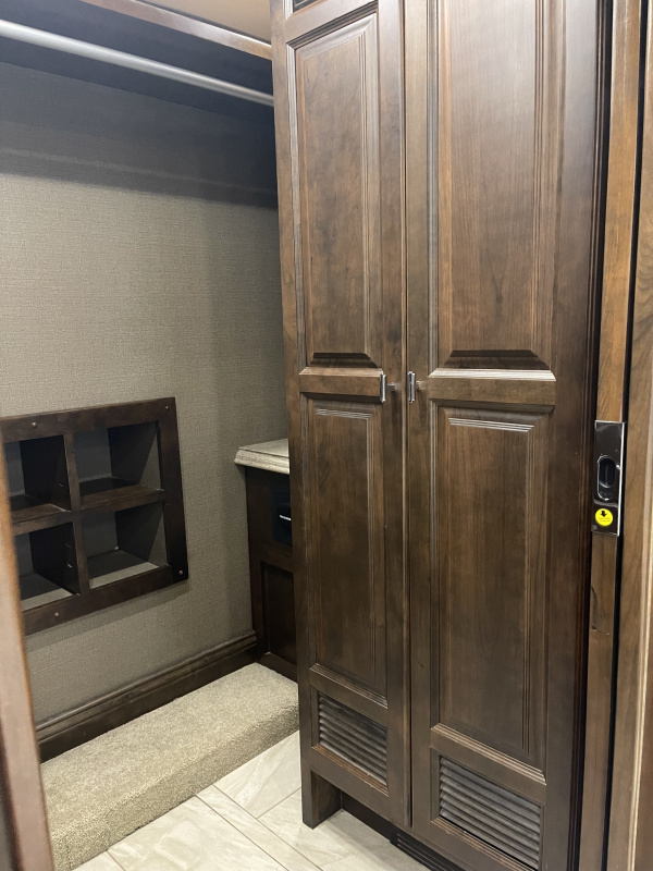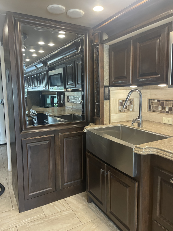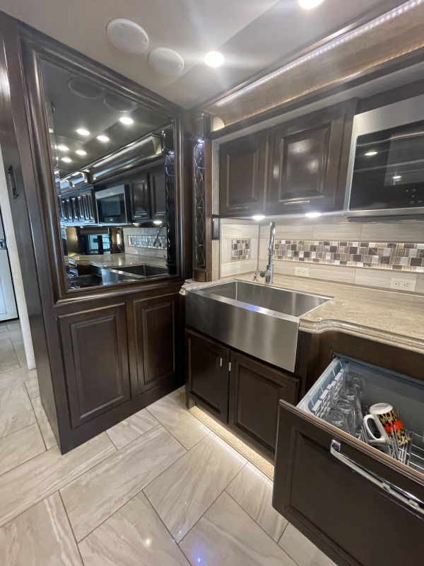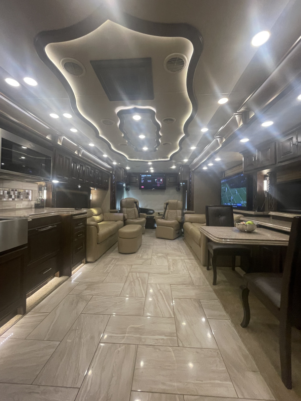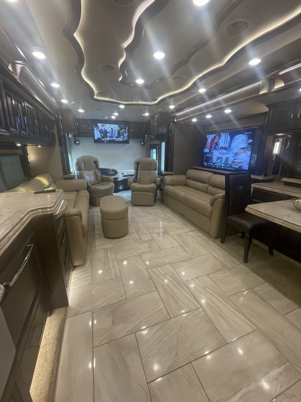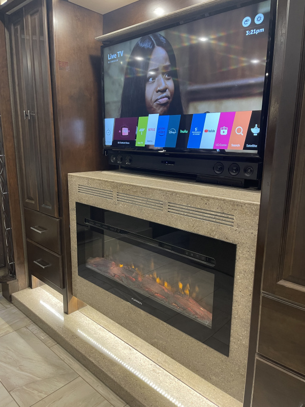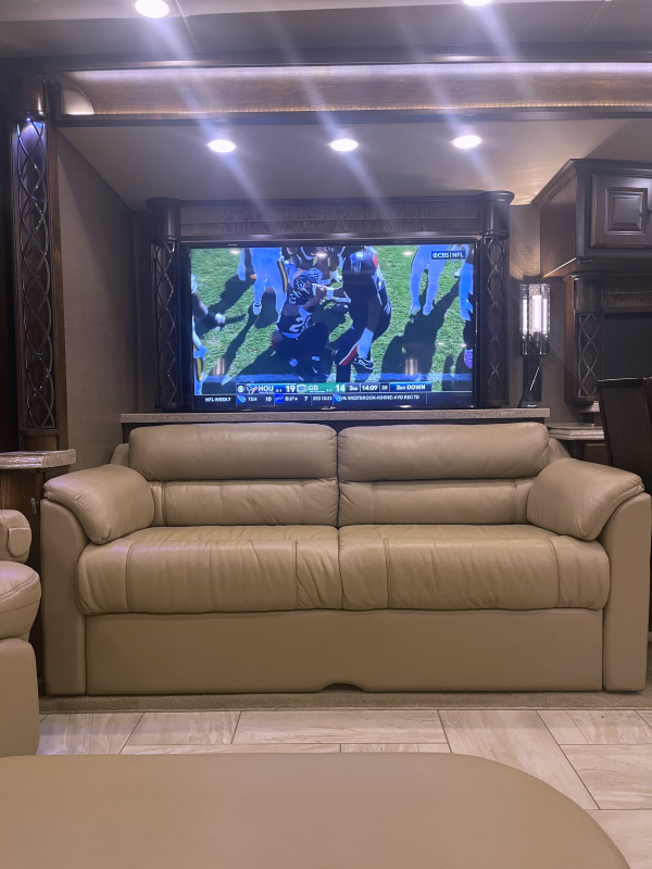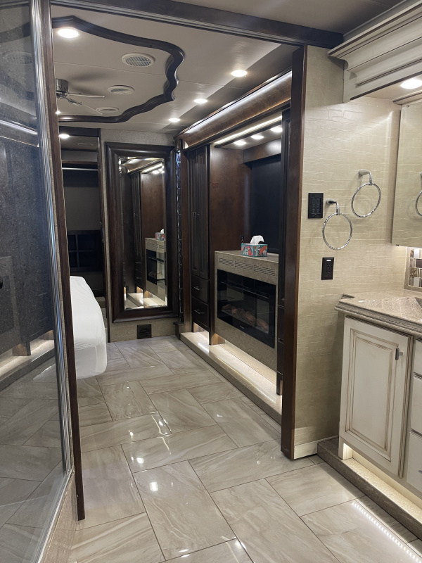 STARLINK IN MOTION SATELLITE! 4 slides. 3 Solar Panels, induction cooktop, 1 bathroom with largest shower available in a MH, king bedroom with fireplace, 4 TVs, heated tile throughout, upgraded convection/microwave, dishwasher, residential refrigerator, washer & dryer, full size closet. Clear title, pre-Covid, pre-Thor, non-smoking, with 57,756 highway miles.